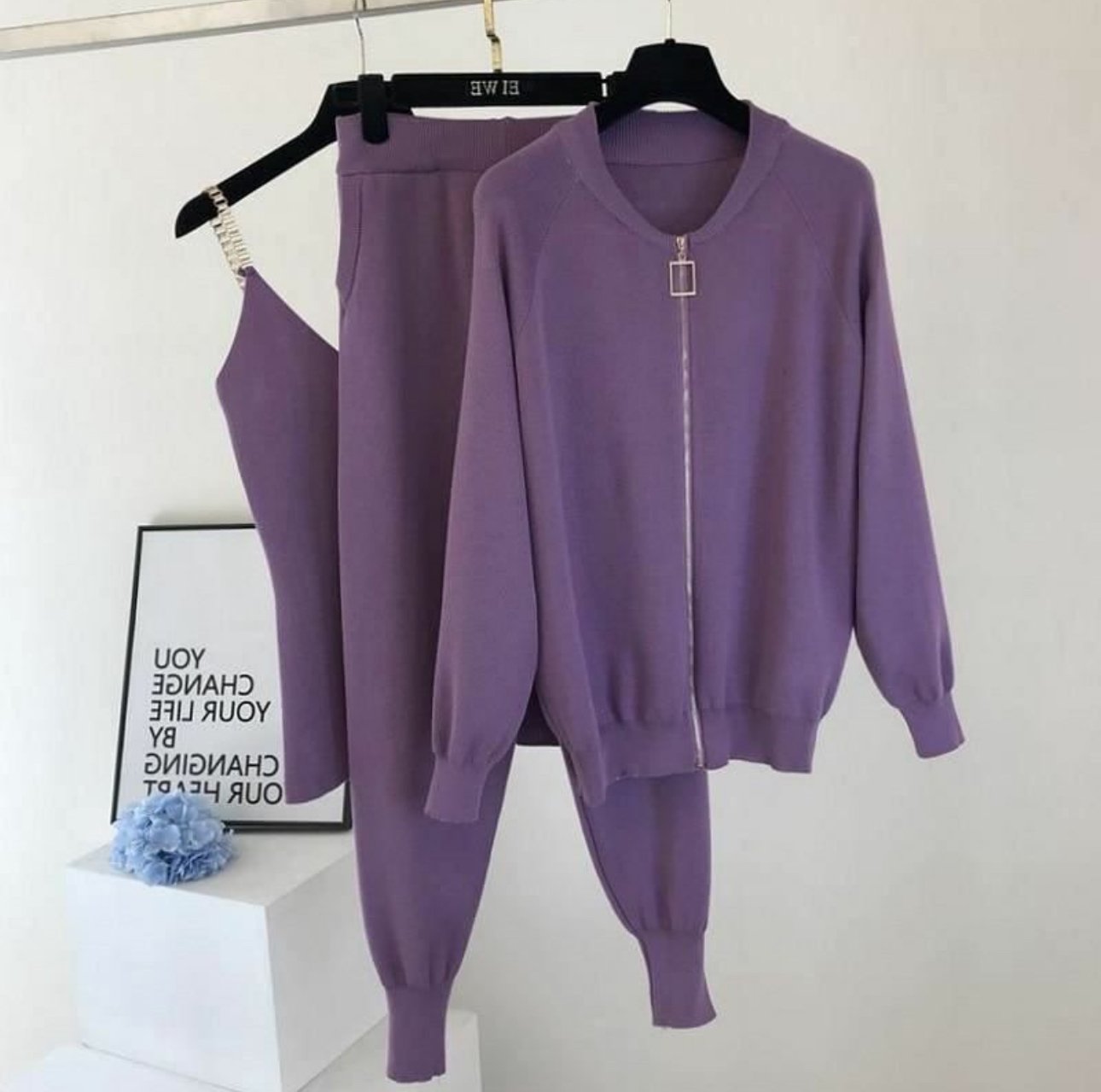 THIS SET INCLUDES A STYLISH CARDIGAN, CAMI TOP AND PANTS