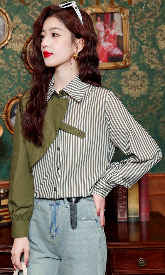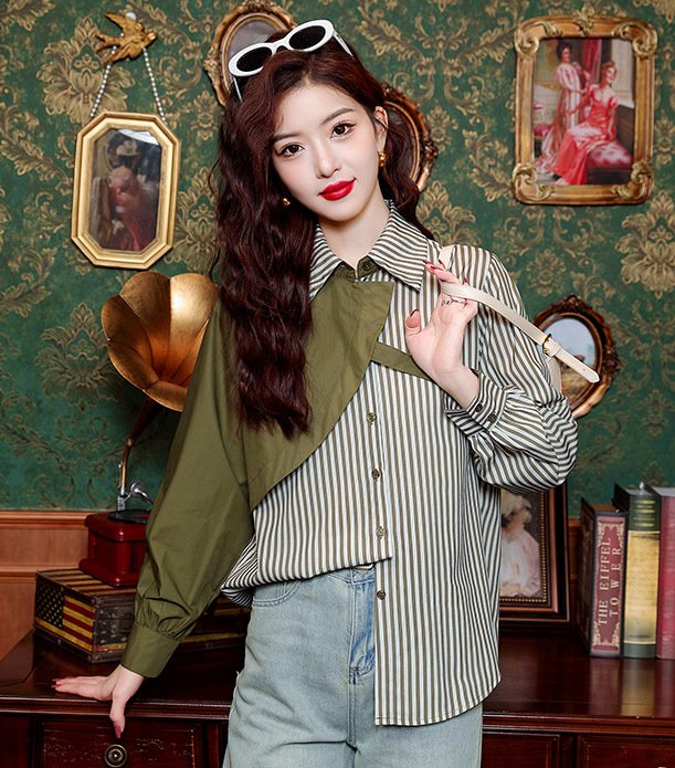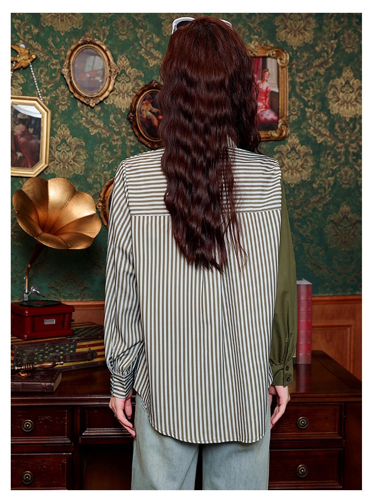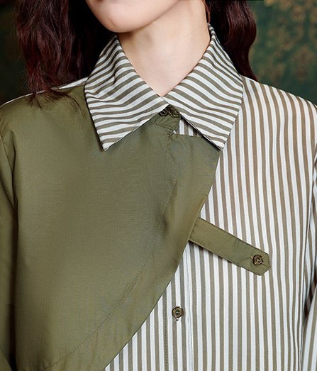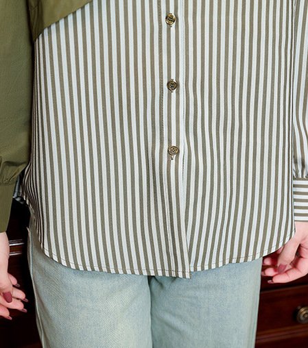 "SAGE" PATCHWORK STRIPED SHIRT